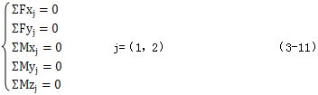 而兩曲柄軸上的力系為空間力系,其平衡方程為: