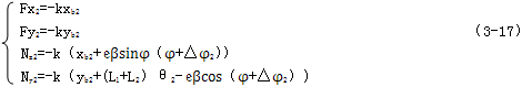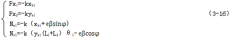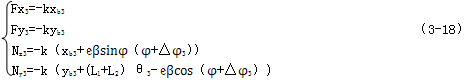 連桿上兩端的作用反力與接觸點處的彈性變形量成正比,因此可表達為: