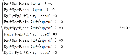 e(Ny1cosφ+Ny2cos(φ+△φ2)+Ny3cos(φ+△φ3)-Nx1sinφ-Nx2sin(φ+△φ2)-Nx3sin(φ+△φ3) (3-20)