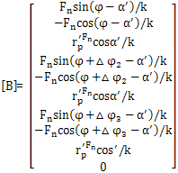 當對兩相平行軸擺線針輪減速器求解時,△φ2=180,第三塊環(huán)板因每輸出扭矩,其相應(yīng)的Fn=0;而對三相平行軸擺線針輪減速器,△φ2=120,△φ3=240。