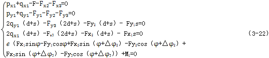 共可列出10個方程,聯(lián)立式(3-10)或(3-11),對于多相并列雙曲柄結(jié)構(gòu),用一般靜態(tài)力學(xué)分析方法,可列出3n+10個方程,而未知量的總數(shù)為4n+9(運動副反力和輸入力矩),故機構(gòu)中未知量,(n-1)正是機構(gòu)中的虛約束個數(shù),為了得到補充方程,必須考慮構(gòu)件的變形協(xié)調(diào)要求。