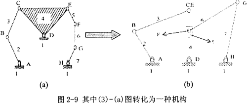 (1)一般化,是指將具有機(jī)件和運(yùn)動副的原始機(jī)械裝置,轉(zhuǎn)化為只有一般化連桿和一般化(運(yùn)動)副的機(jī)構(gòu),這樣形成的閉環(huán)鏈稱為一般化(運(yùn)動)鏈。