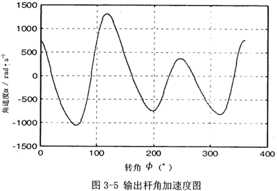 首先由圖3-2可以看到,若機構(gòu)結(jié)構(gòu)參數(shù)設(shè)計恰當,并且調(diào)整中間滑塊3偏移到合適的位置時,可在一定范圍內(nèi),產(chǎn)生一個反向的速度波適度抵消原速度波動。再由圖3-3可知,在未加入第二自由度時,加速度變化值不大,說明阻力矩和電機主動力矩不會受到大的影響,不致導致原機械系統(tǒng)的各項參數(shù)發(fā)生大的變化。