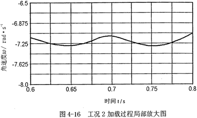 以上兩組數(shù)據(jù)分析表明,加載時(shí),經(jīng)柔性速度補(bǔ)償裝置速度補(bǔ)償后的速度輸出,在加載的時(shí)段,速度波動(dòng)明顯減小,具體數(shù)值可參看其局部放大圖,另外,阻力矩和電機(jī)的主動(dòng)力距和加柔性速度補(bǔ)償裝置前數(shù)值大小沒(méi)有明顯變化,表明對(duì)原機(jī)械系統(tǒng)的電機(jī)和其它動(dòng)力、強(qiáng)度等一些性能參數(shù)沒(méi)有大的影響。