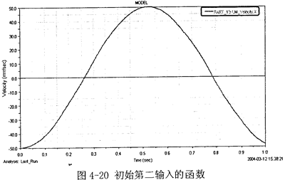 第一步:(1)給第二輸入一個(gè)函數(shù),假設(shè)V2(2)=50cos(2πt)mm/s,如圖4-20所示。