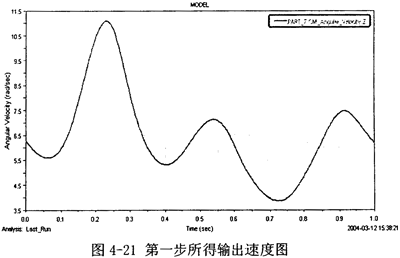 (2)在adams下建立的樣機(jī)模型里,將上述速度值設(shè)置到第二輸入中,設(shè)置好后,進(jìn)行仿真。得到輸出速度圖4-21。