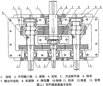 根據(jù)以上分析,本文設(shè)計了如圖2.1 所示的新型雙環(huán)減速器結(jié)構(gòu),并申請獲得了國家實(shí)用新型專利(專利號:ZL 01 2 06843.8),其特點(diǎn)如下: