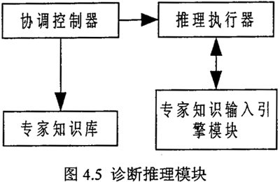 推理模塊是一個隱藏于后臺的推理計算模塊,它的結(jié)構如圖4.5,協(xié)調(diào)控制器用來管理各推理機的工作并協(xié)調(diào)推理執(zhí)行器與專家知識輸入引擎模塊可知,對一示同的故障,其“數(shù)據(jù)層”、“故障現(xiàn)象層”、“故障原因?qū)印奔捌渌鼈冎g的連線關系絕不相同,協(xié)調(diào)控制器就是將“數(shù)據(jù)層”、“故障現(xiàn)象層”、“故障原因?qū)印奔捌渌鼈冎g的連線關系自動轉(zhuǎn)化為推理進程關系,由推理執(zhí)行器完成推理診斷工作。