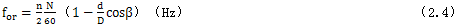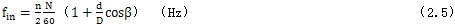 2.軸承等傳動件產(chǎn)生的激勵頻率滾動軸承旋轉頻率為: