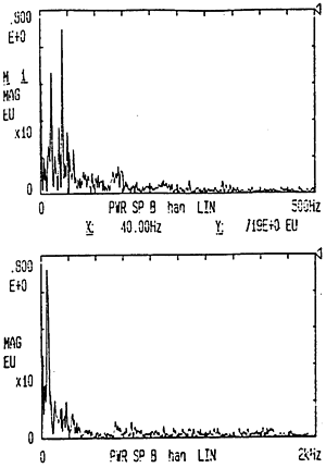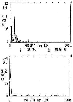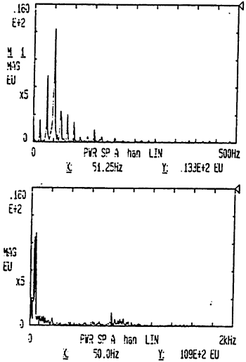 如圖6-14、圖6-15、圖6-16、圖6-17、圖6-18、圖6-19及圖6-20示,圖中示出了各種工況下,頻率范圍為0~500HZ和0~2KHZ速度自功率譜密度函數(shù)的對(duì)比,從圖中可以看出,速度自功率譜密度函數(shù)值主要集中在500HZ頻率范圍內(nèi),這樣,我們以0~500HZ的范圍來(lái)計(jì)算均方根速度的精度是足夠的。根據(jù)CF-355內(nèi)部設(shè)置知時(shí)間