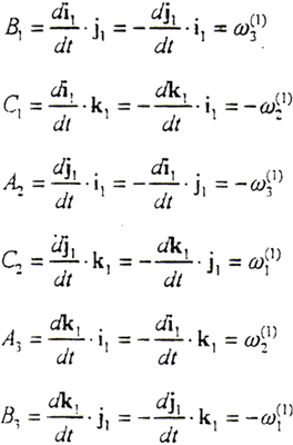 以i1、j1、k1分別點(diǎn)乘以上三式的兩邊,有