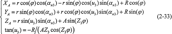 應平行于活齒中心的速度方向矢量{0,-tan(u3),1},據(jù)此條件,可以得到α=αn3-π/2。則旋轉軸的方向矢量為: