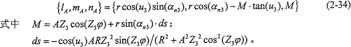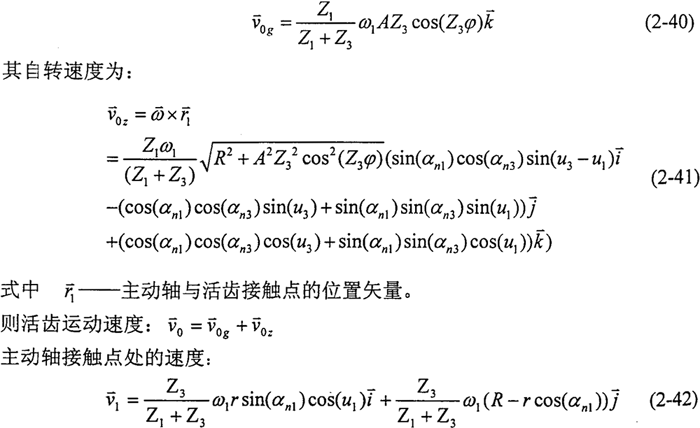 同理,由式(2-35)可以求得活齒中心的運動速度方向,轉換到活齒坐標系后,其方向數(shù)為: