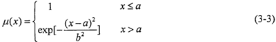 的均值,對應隸屬度為l的數(shù);a、β分別為左、右分布;當a、β為零時,