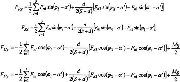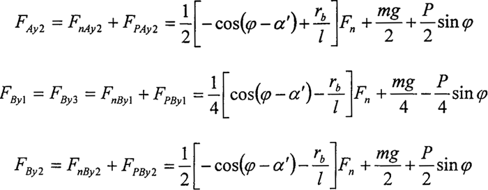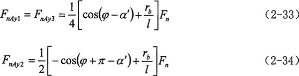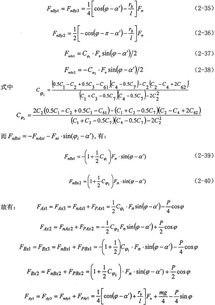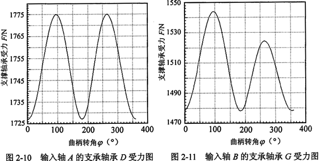 2.曲柄軸支撐軸承的作用力分析 根據(jù)力學(xué)原理,對(duì)于輸入同可得到下列方程式: