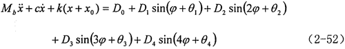 式中 Mb——曲柄軸質(zhì)量的一半;C——軸承阻尼系數(shù);k——軸承剛度。