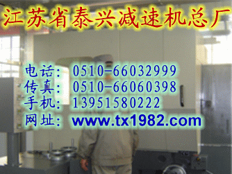 江蘇泰興減速機總廠業(yè)務部 在改革開放中崛起的江蘇省泰興減速機廠,現已成為中國減速機生產基地,中國機械工業(yè)500強重點企業(yè)。2004年公司完成含稅銷售收入6億元,創(chuàng)利稅1.5億元,交納泰興兩稅及基金規(guī)費8500萬元。公司