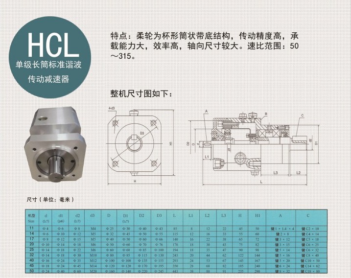 HCL-17-100-整機(jī)/HCL型長筒單級(jí)諧波減速機(jī)